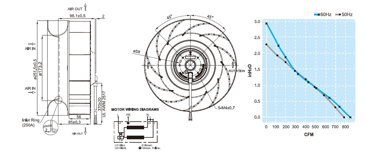 UF250APA11H1C2A離心風(fēng)扇臺(tái)灣福佑伺服電機(jī)散熱風(fēng)扇充電樁外轉(zhuǎn)子